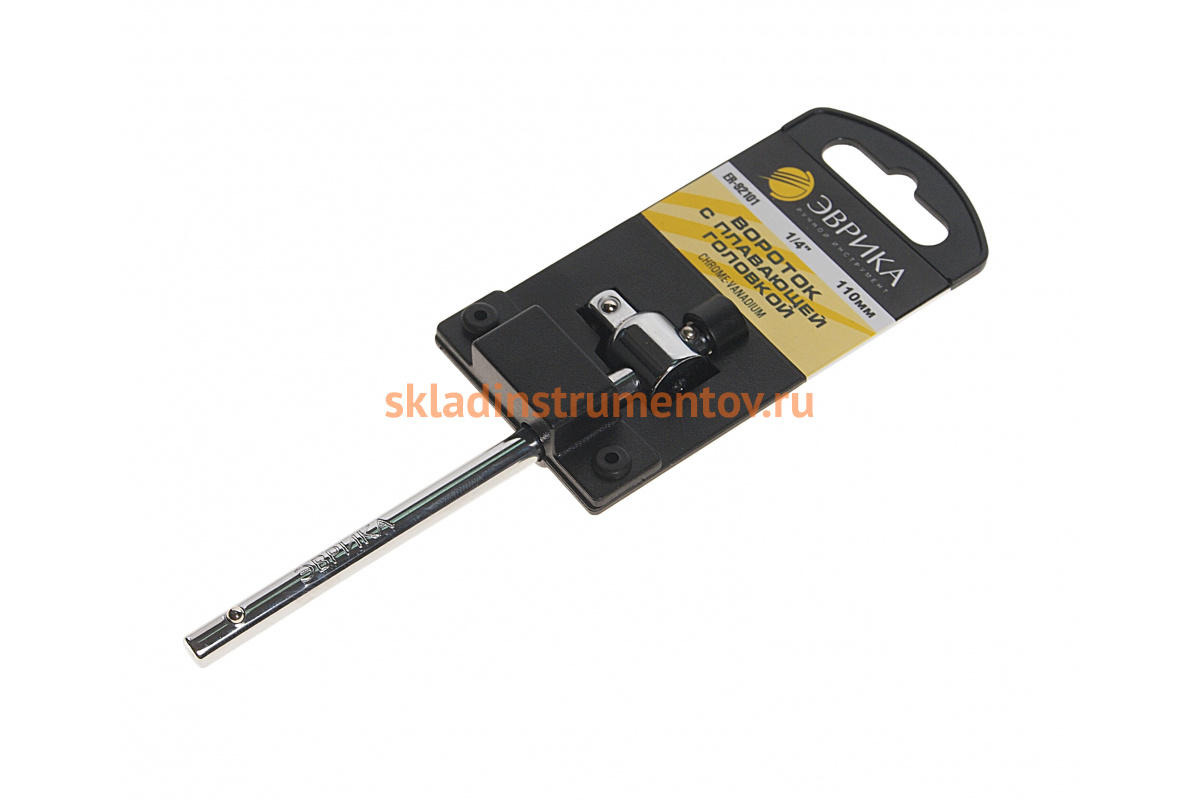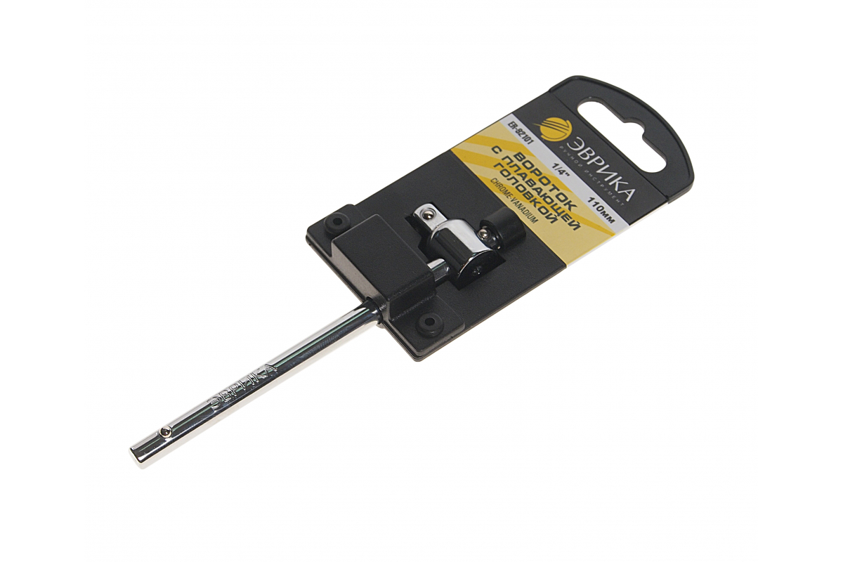 Вороток с плавающей головкой ЭВРИКА 1/4 DR 110мм с держателем ER-92101H удобен для работы с крепежом различного формата.