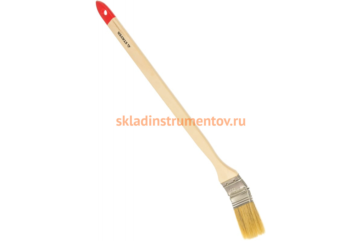 Радиаторная кисть STAYER MASTER Универсал светлая натуральная щетина 1,5"/38мм 0112-38_z*01 предназначена для нанесения всех видов лакокрасочных материалов в труднодоступные места. Инструмент обладает натуральной щетиной, которая обеспечивает равномерное нанесение краски. Бандаж изготовлен из металла, а рукоятка из древесины.