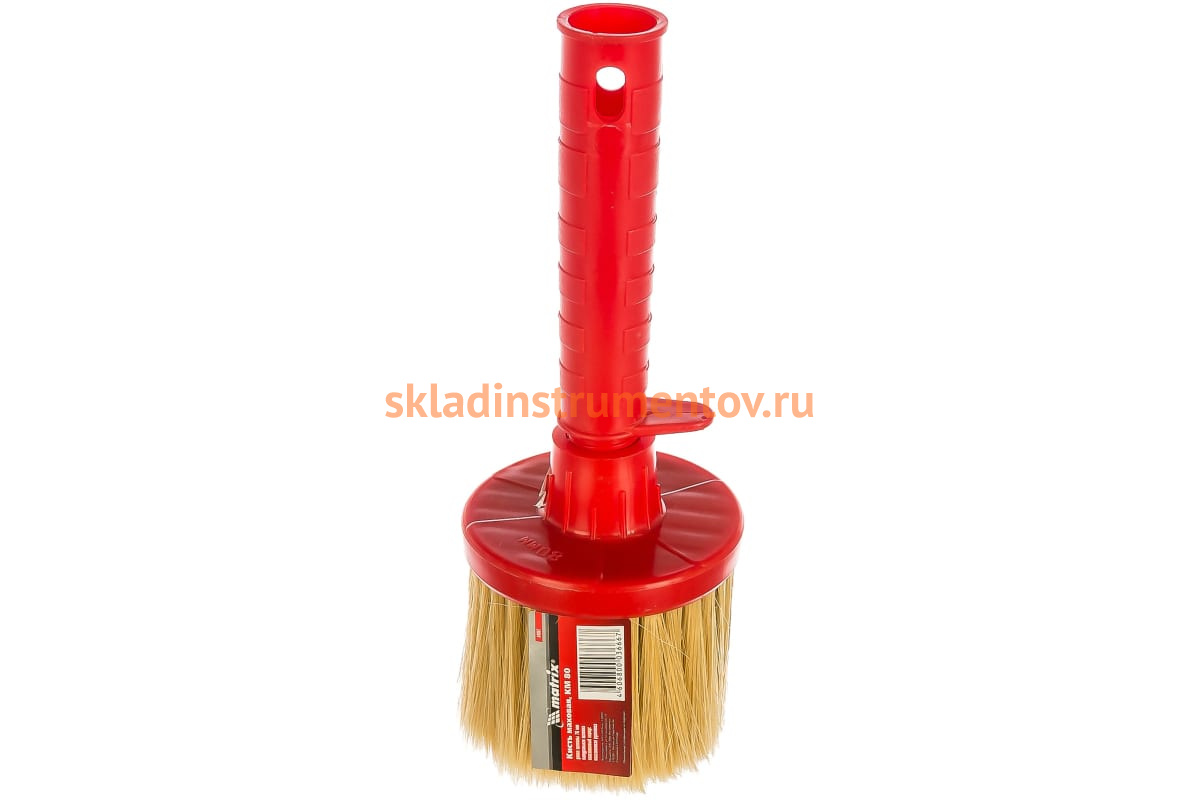 Маховая кисть MATRIX КМ 80 84007 оснащена полой ручкой с отверстием на конце, которое позволяет крепить удлинитель или подвешивать изделие после работы. Рабочая часть выполнена из натуральной щетины, обеспечивающей равномерное нанесение материала на обрабатываемую поверхность. Рукоятку из пластика можно снять и заменить на телескопический или резьбовой удлинитель.