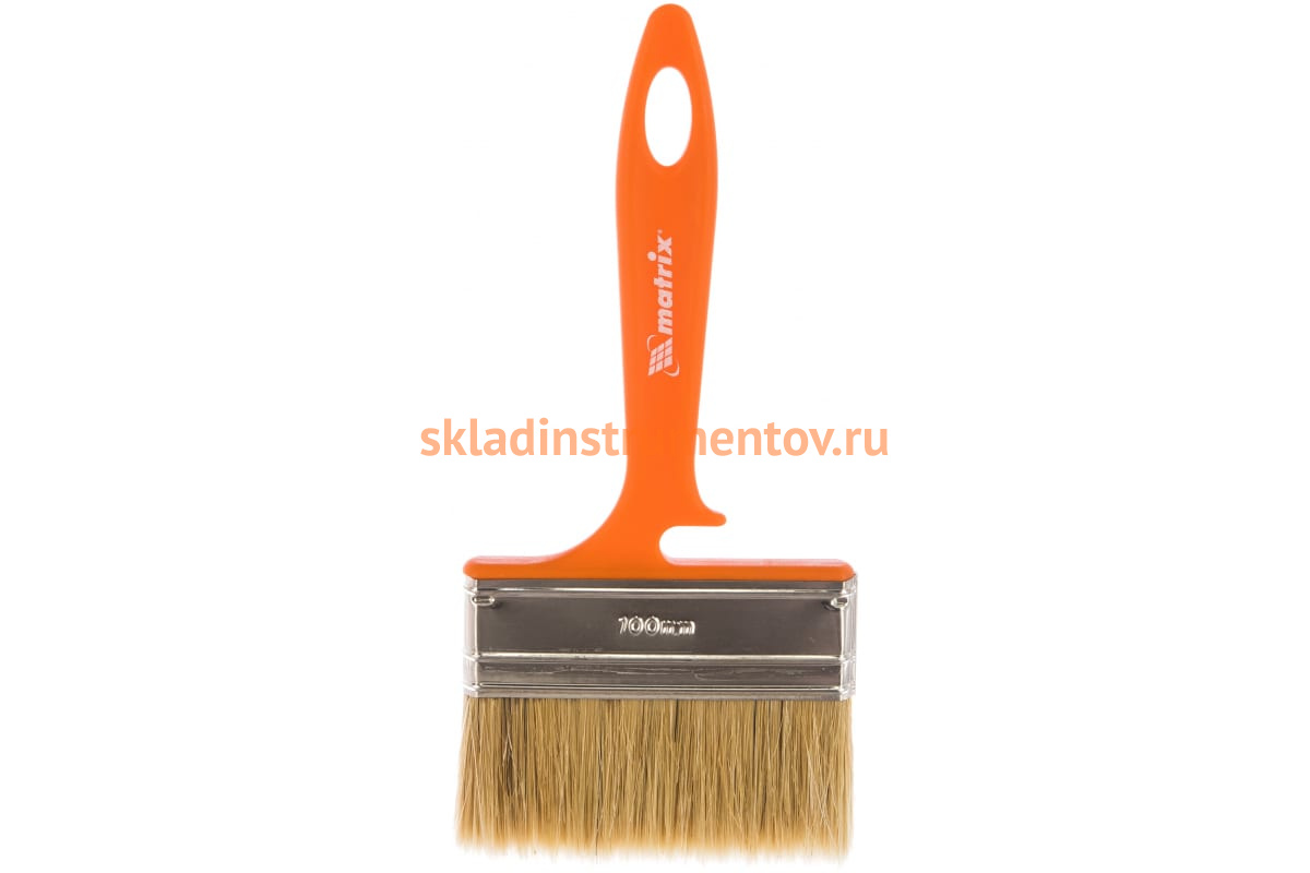 Флейцевая кисть MATRIX Color Line ФАСАД 100х12 мм 83392 отличается качеством и подходит для красок, лаков и эмалей. Используется для фасадных работ, лакирования грубых поверхностей. Пластиковые клинья увеличивают рабочий ресурс кисти в несколько раз. На конце рукоятки проделано отверстие для подвеса. Возможно крепление на банке с краской.