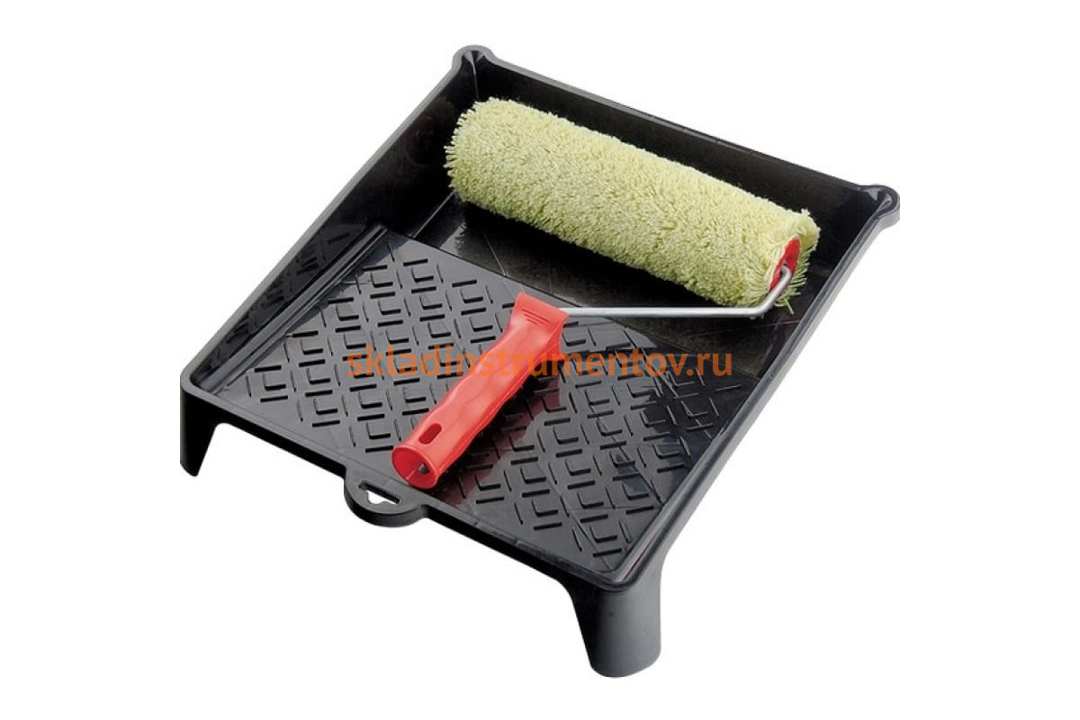 В комплект входит удобный поддон, позволяющий равномерно наносить материал на валик и экономно его расходовать.