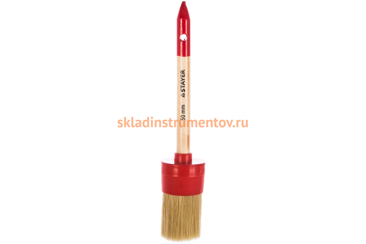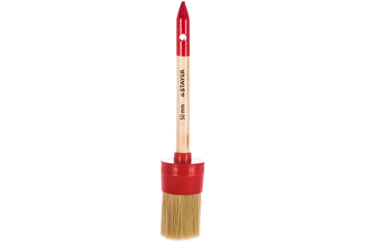 Круглая кисть STAYER UNIVERSAL-STANDART 0141-50 используется для нанесения масляных красок, эмалей и других лакокрасочных материалов на различные поверхности. Размер кисти составляет 14 х 50 мм. Срок службы этой кисти повышен благодаря пластмассовому бандажу, не подверженному коррозии.