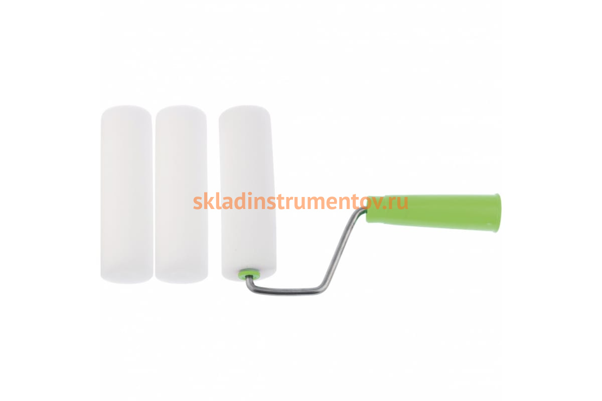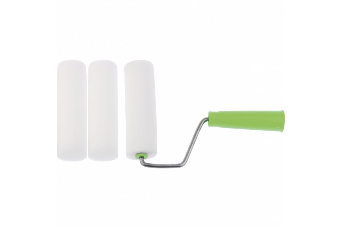 Валик СИБРТЕХ ПОРОЛОН с ручкой + 2 шубки, 140 мм 80450 используется на гладких поверхностях с водно-дисперсионными красками, водно-клеевыми составами. Отделочный инструмент состоит из поролоновой шубки, стального бюгеля и рукоятки из ударопрочного пластика. В комплекте идет два сменных валика. Валик не предназначен для работ с красками на основе химических растворителей.