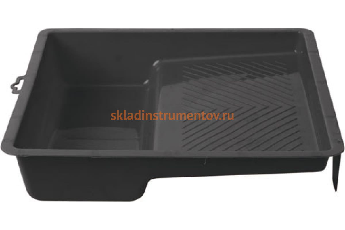 Ванночка для краски (черная, 320х315 мм) КУРС 04016 используется вместе с валиками при окрашивании. Емкость разделена на две части: углубление для краски и рельефную поверхность, при помощи которой с валика можно удалить остатки или излишки краски.