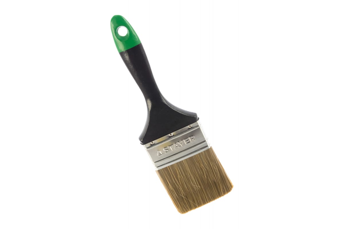 Плоская кисть STAYER AQUA-KANEKARON 0106-075 используется для нанесения водоэмульсионных красок, эмалей и других лакокрасочных материалов на различные поверхности. Размер кисти составляет 75 мм. Кисть можно подвесить для просушки или хранения благодаря специальному отверстию в рукоятке.