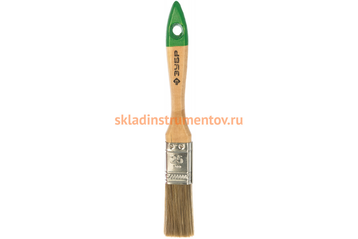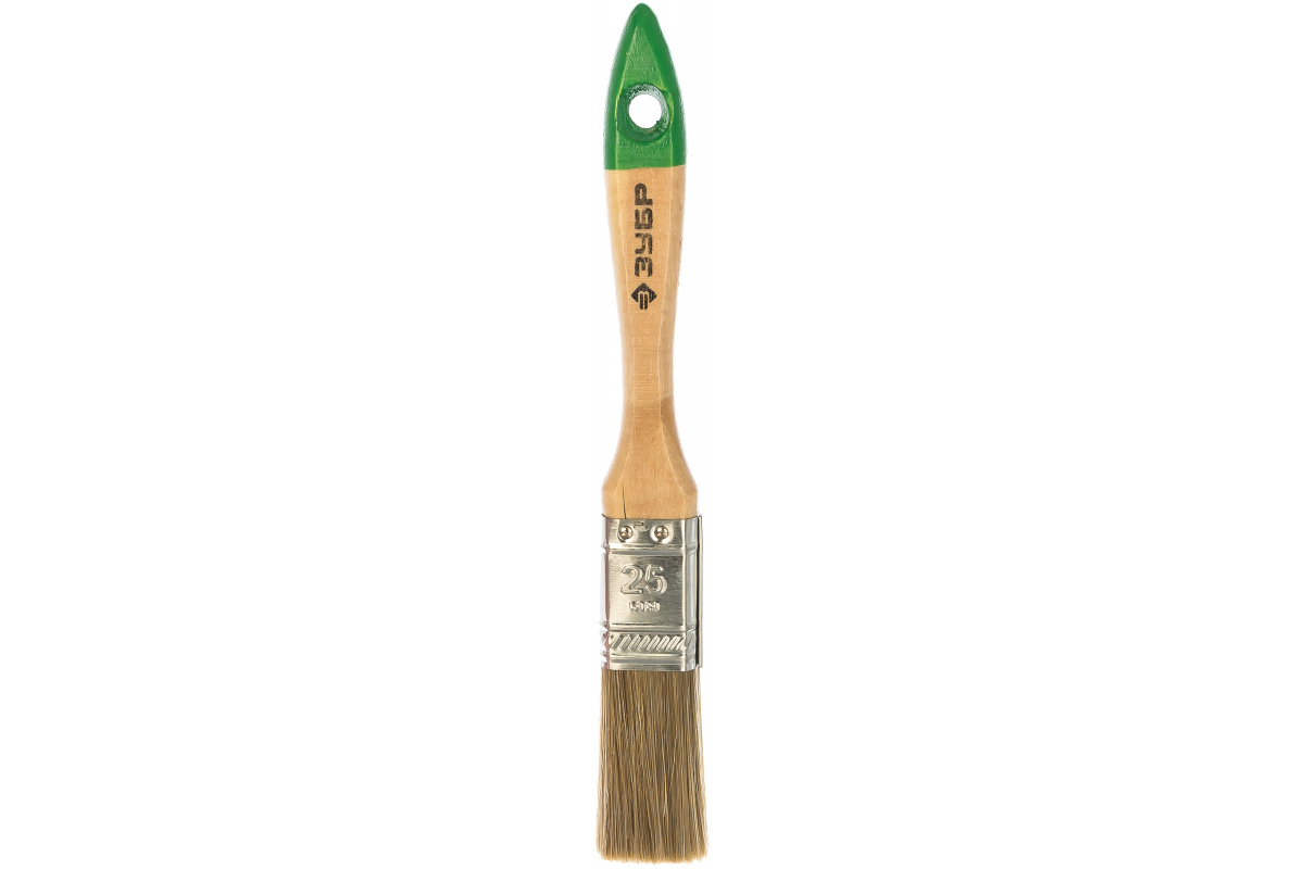 Плоская кисть ЗУБР ЛАЗУРЬ-МАСТЕР 4-01009-025 предназначена для нанесения различных лакокрасочных материалов. Для удобства хранения инструмента предусмотрено специальное отверстие в рукоятке - можно подвесить кисть в вертикальном положении.