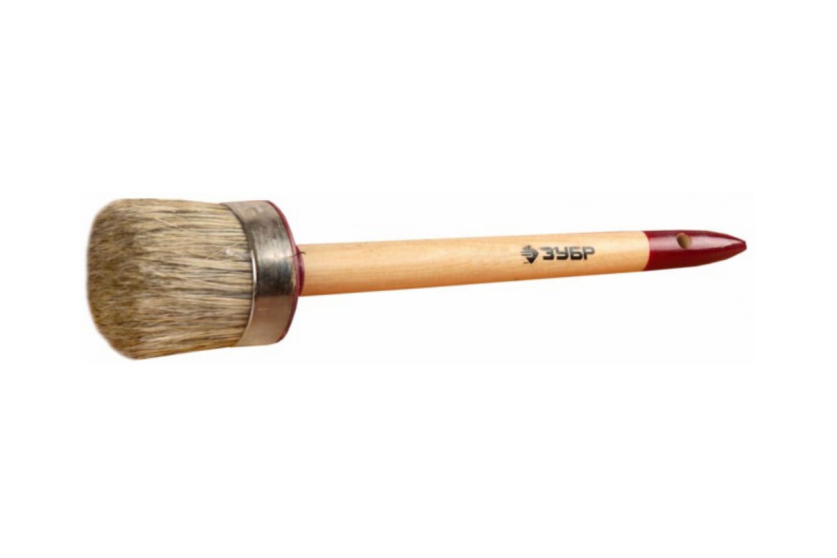 Круглая кисть ЗУБР УНИВЕРСАЛ-МАСТЕР №14х50мм 01501-50 предназначена для работ с лакокрасочными материалами и лаками, также с помощью данного инструмента можно наносить обойный клей. Деревянная ручка добавит комфорта в работе, а с помощью отверстия на рукоятке кисть можно подвешивать. Диаметр кисти составляет 50 мм.