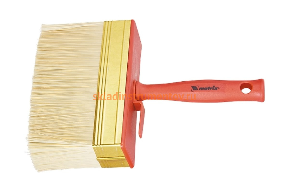 Кисть-макловица MATRIX 120 х 30 мм 84127 позволяет производить окраску больших поверхностей, наносить клеящие составы или размывать краски. Ворс выполнен из искусственной щетины, которую держит металлический бандаж, стойкий к возникновению коррозии. Рукоятка изготовлена из пластика. Размер - 120 х 30 мм.