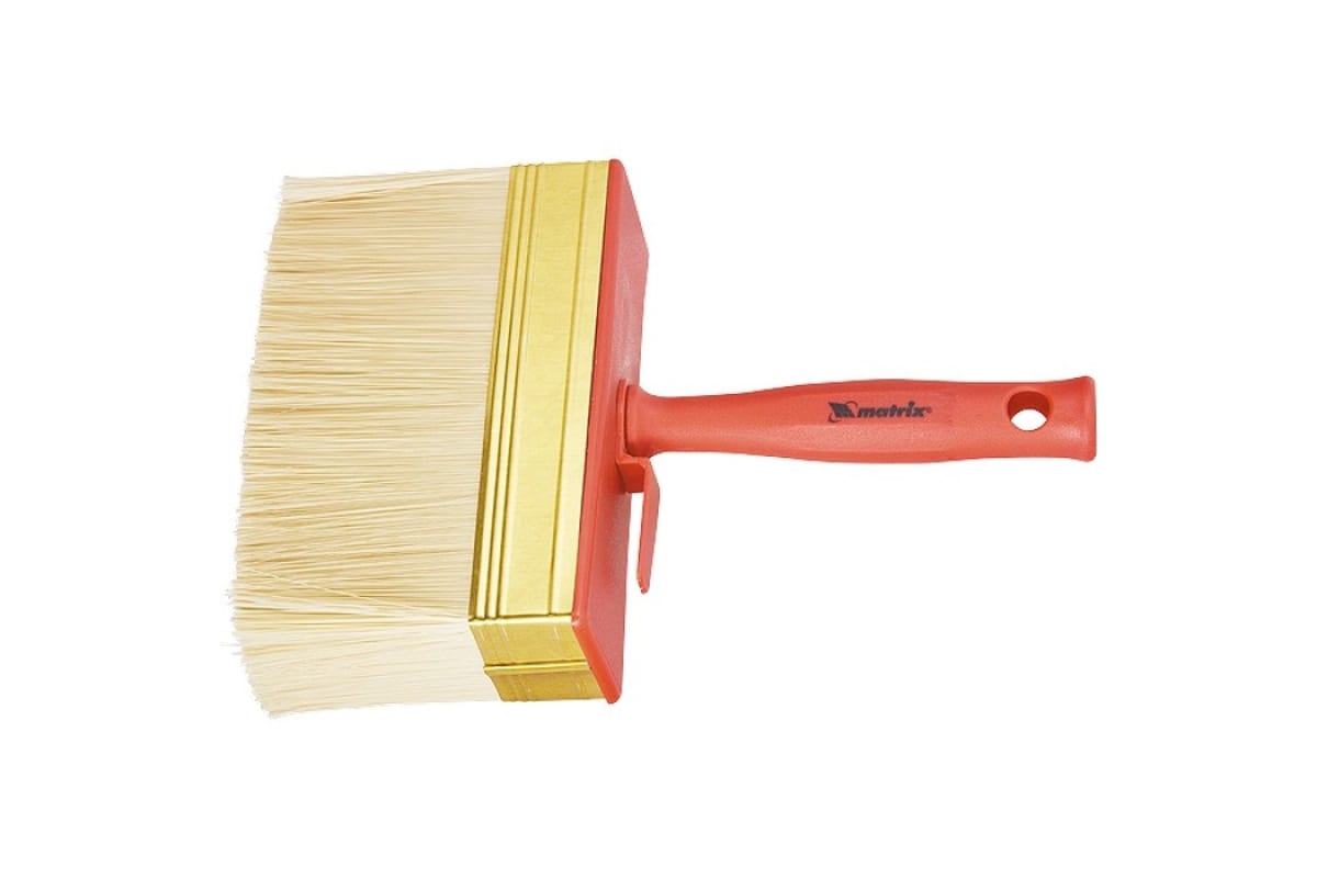 Кисть-макловица, 140х40 мм MATRIX MASTER 84128 - профессиональное малярное приспособление размером 140х40 мм, применяемое для нанесения лакокрасочных составов на поверхность большой площади. Искусственная щетина позволяет выполнять большой объем работы, металлический бандаж надежно фиксирует щетинки и не дает им рассыпаться.