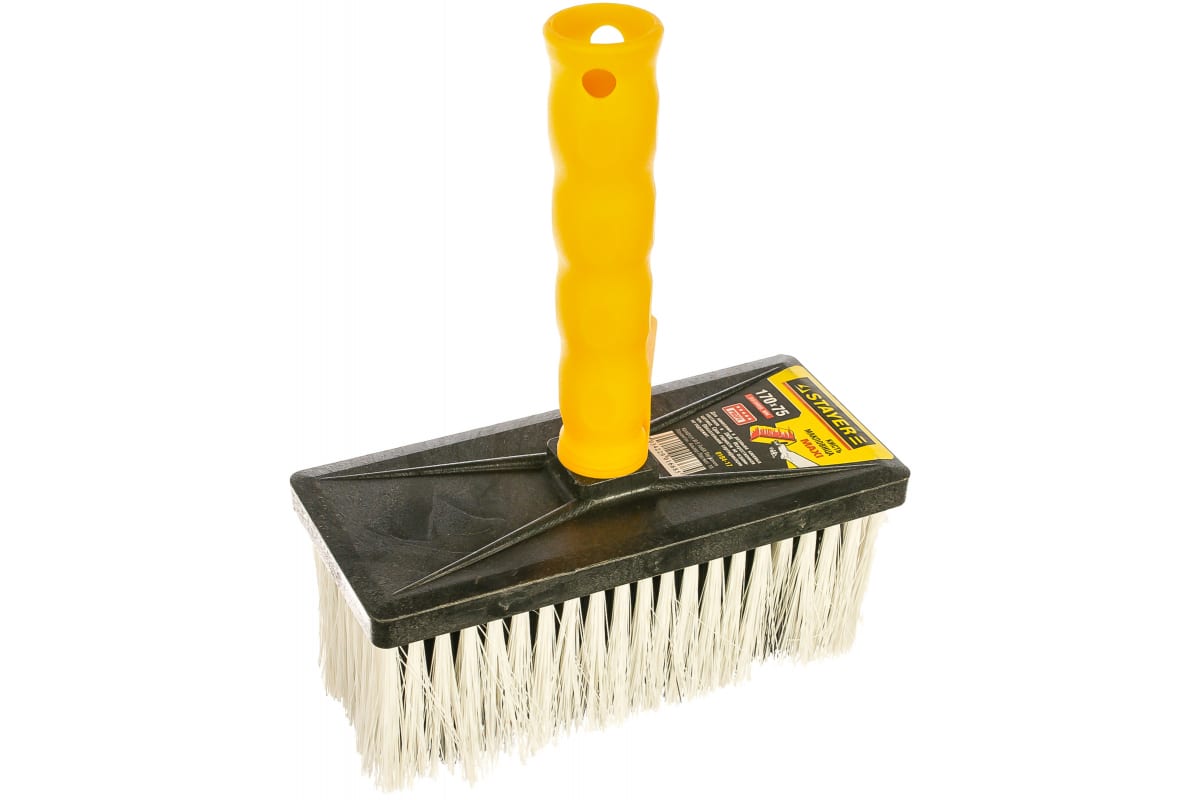 Макловица STAYER PROFI MAXI 0184-17 - ручной инструмент для грунтовки и побелки. Щетина искусственная светлая по краям и темная посередине, закрепленная на пластмассовом основании. Рукоятка также из пластмассы с возможностью закрепления на телескопическую ручку.