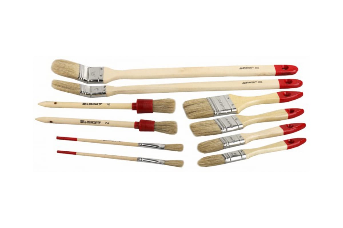 Набор кистей STAYER UNIVERSAL-STANDART 0163-H10 - комплект кистей различных размеров для выполнения малярных работ любой сложности, используя все типы лакокрасочных составов. Позволяют обрабатывать и площади средних размеров, и труднодоступные места, выполнять различные рисунки.