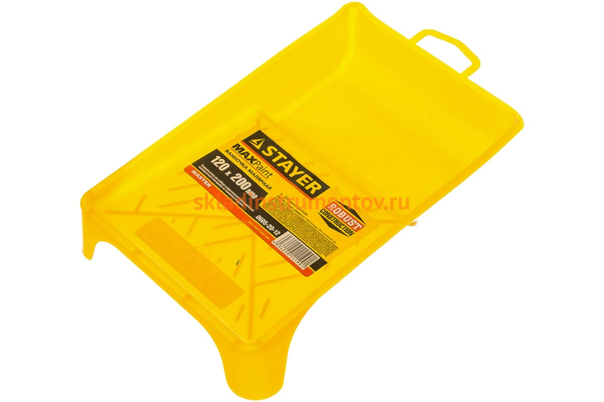 Малярная пластмассовая ванночка STAYER 0605-20-12 размерами 120х200 мм используется для эффективного распределения краски по поверхности валика. Выполнена из пластмассы и имеет дополнительные ножки для лучшей устойчивости.