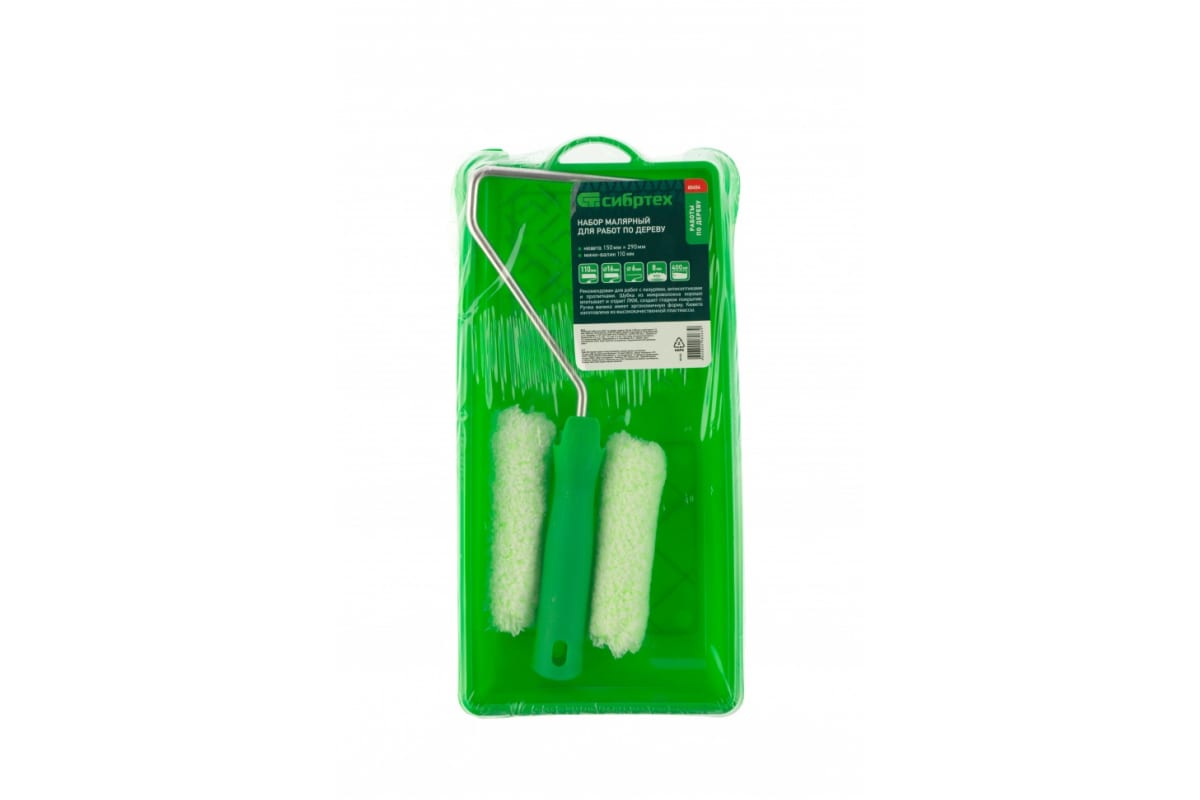 —Малярный набор для работ по дереву СИБРТЕХ кювета 150 мм х 290 мм и мини-валик 110 мм/ 80454