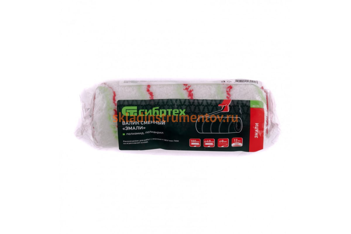 Сменный валик 180 мм,ворс 12 мм, D 48 мм, D ручки 8 мм СИБРТЕХ Эмали 80172 удобен при окрашивании плоских и изогнутых поверхностей, в том числе и сложной формы, различными эмалями.