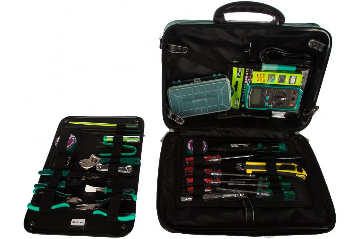Набор инструментов 1PK-2003B 00262550 включает множество предметов для электромонтажных работ.