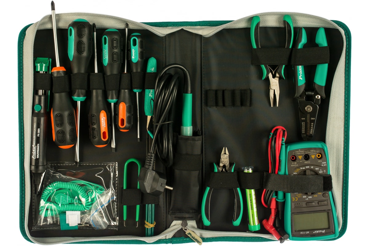 Набор инструмента ProsKit PK-2623B 00325125 включает принадлежности, которые необходимы при ремонте различной электроники.