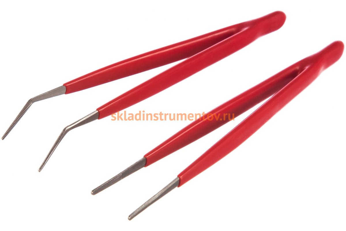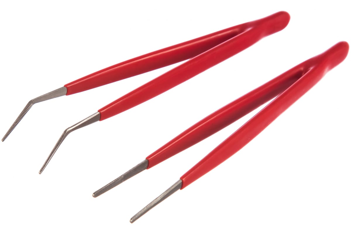 Набор антимагнитных пинцетов ProsKit 908-T301 00141491 включает в себя модель с прямыми и изогнутыми губками. Изолированные рукоятки не скользят в руках.