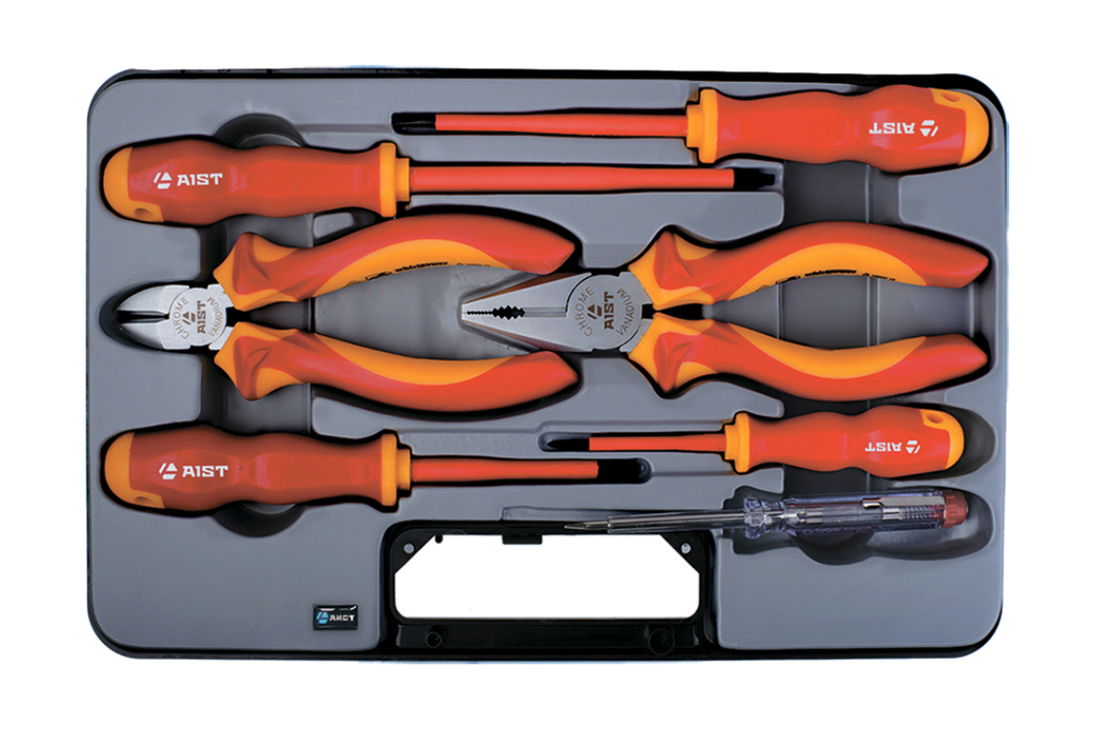 Набор диэлектрического инструмента AIST 7 предметов 701107 00-00010555 используется для проведения монтажных работ на сети 220 В.