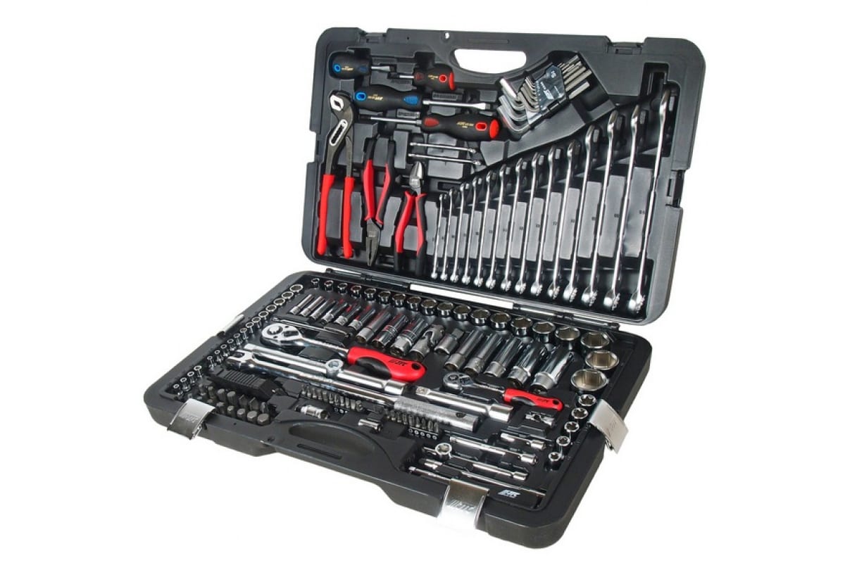 Набор инструментов JTC 145 предметов JTC-H145C поставляется в переносном кейсе, который оснащен защелками и ручкой. Набор состоит из инструментов, которые служат для проведения слесарно-монтажных работ. Рабочие части изделий изготовлены из высококачественной стали, отличаются долговечностью и надежностью применения. В комплекте 145 предметов, инструменты на квадраты 1/2 " и 1/4".
