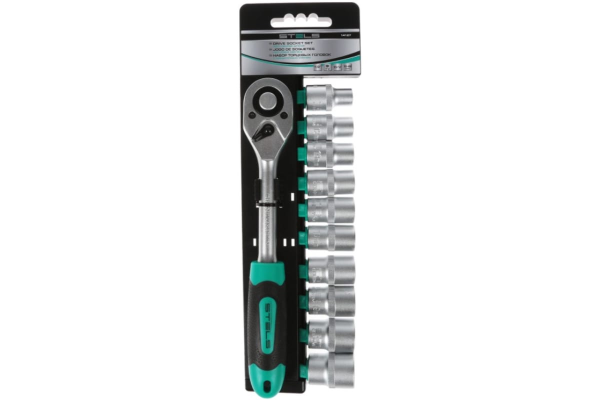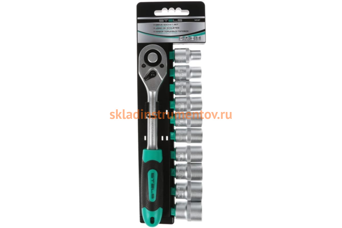 Набор торцевых головок STELS 1/2 11 предметов 14127 используется при монтаже и демонтаже резьбовых соединений с квадратом 1/2". Все рабочие части набора выполнены из прочной хромованадиевой стали. Ключ с матовым хромированием покрытия оснащен трещоткой с 72 зубьями. Переключатель реверса фиксируется в двух положениях. Комплект хранится на пластиковом держателе. Подвесная карта (размеры) 325х100х15 мм.
