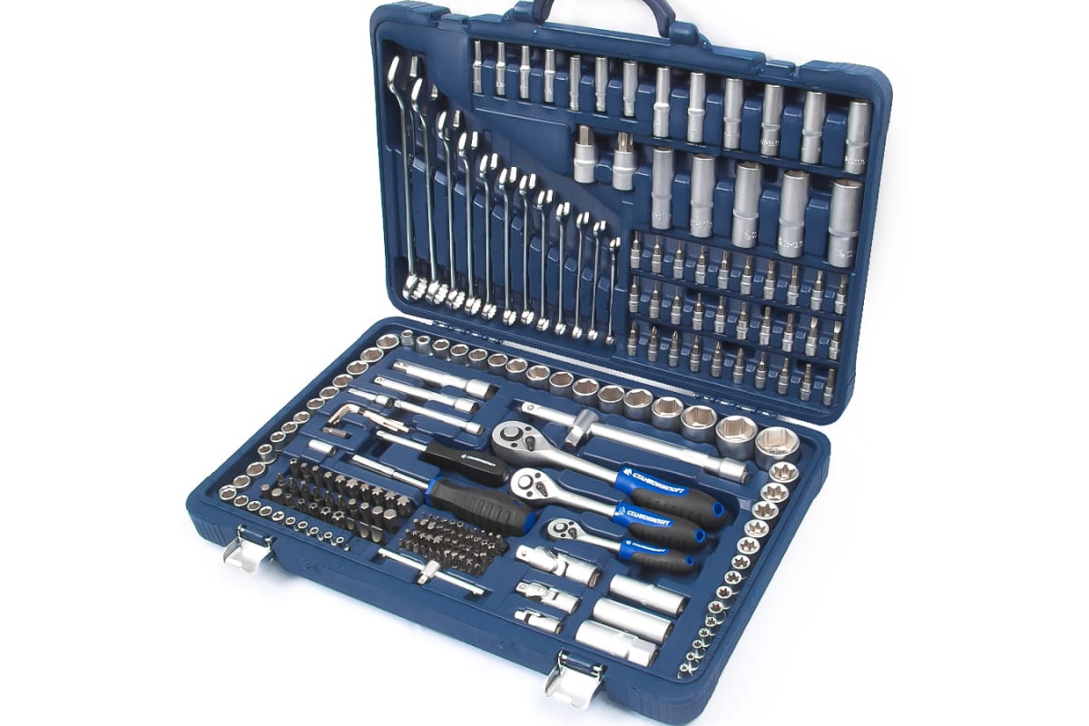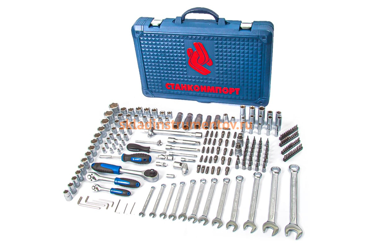 Набор инструментов Станкоимпорт 216 предметов CS-TK216PMQ - идеальный набор для работы с крепежом. Главное преимущество - наличие ключей, бит и головок различного вида. Биты 5/16, 1/4, адаптеры, в том числе и трехсторонний, головки от 4 до 32 мм - все это упрощает работу с крепежом различного вида и подходит для точной работы. Биты имеют отдельные подставки и выступают в качестве поднабора. Инструменты расположены в пластиковом кейсе. Эргономичное позиционирование элементов облегчает крышку, что увеличивает срок службы всего набора.