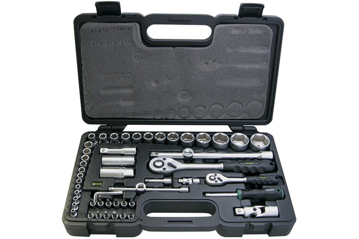 Набор торцовых ключей 1/4 дюйма + 1/2 дюйма, 55 шт HAUPA 110678 представляет собой комплект ручного инструмента для монтажа и демонтажа резьбовых соединений. Рабочие части составляющих выполнены из хромванадиевой стали, которая обеспечивает долговечность и надежность применения. Набор включает ключ с трещоткой и сменными головками. Инструменты размещаются в чемодане черного цвета, удобном для перевозки и хранения.
