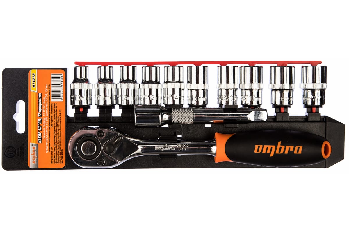 Набор торцевых головок и аксессуаров Ombra 1/2DR 12 предметов 55580 911212 - это прочный и универсальный ручной инструмент, который используется для монтажа и демонтажа резьбовых соединений. Комплект состоит из 10 торцевых головок, трещоточной рукоятки 72 зубца с быстрым сбросом и удлинителя, который облегчает использование в узких местах. Пластиковый держатель позволяет хранить и переносить набор.