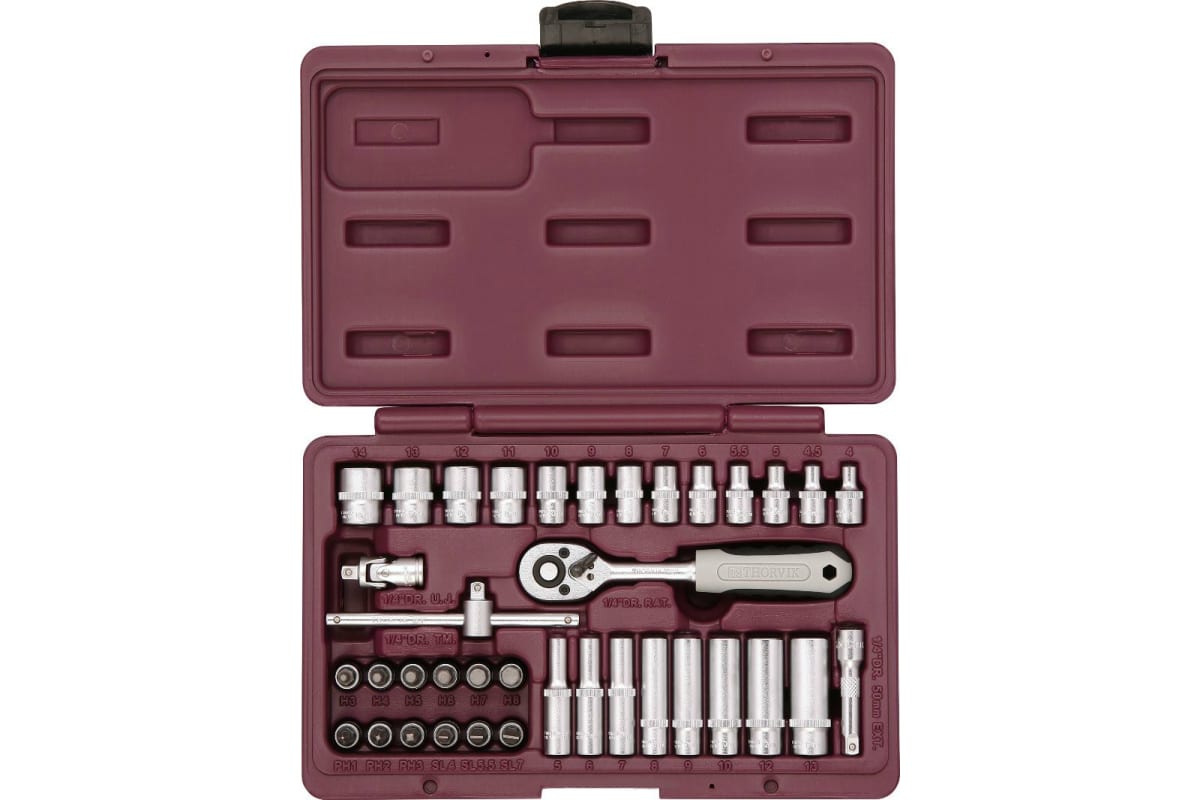 Набор инструмента THORVIK UTS0038 38 предметов 52056 включает в себя приспособления для работы с различными резьбовыми соединениями. Все предметы выполнены из хромованадиевой стали и рассчитаны на длительный срок службы. Набор поставляется в практичном пластиковом кейсе, который облегчает хранение и транспортировку. Инструменты компактно расположены внутри кейса и надежно закреплены в ячейках.