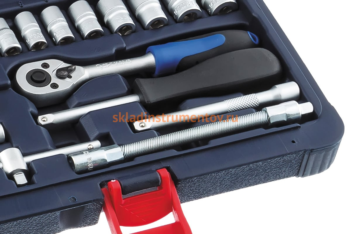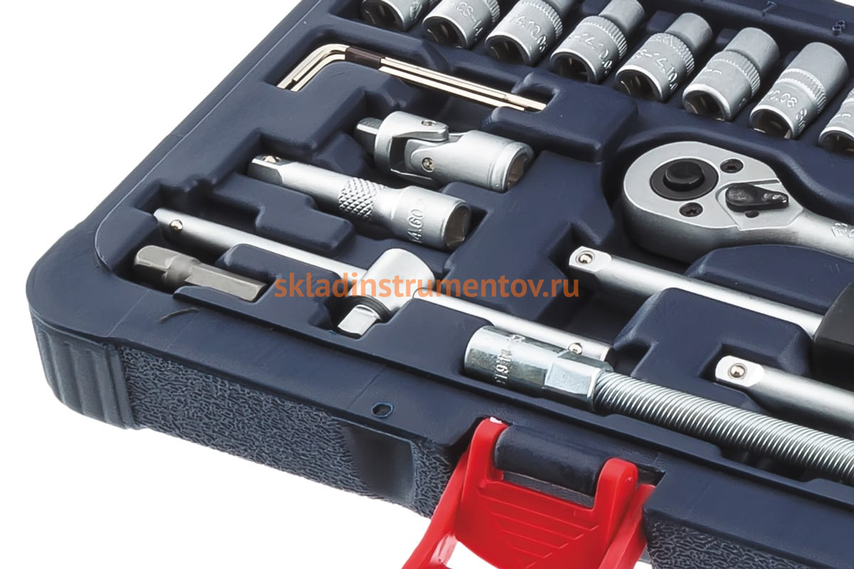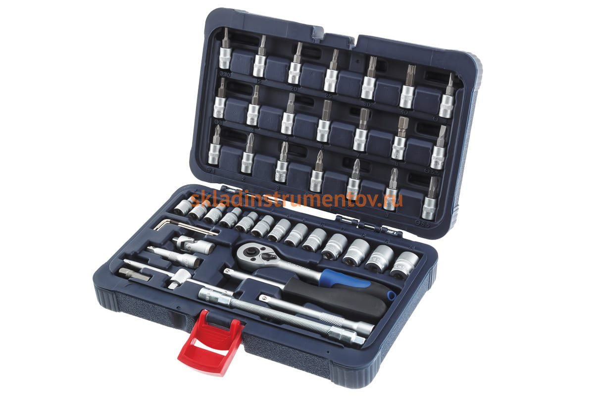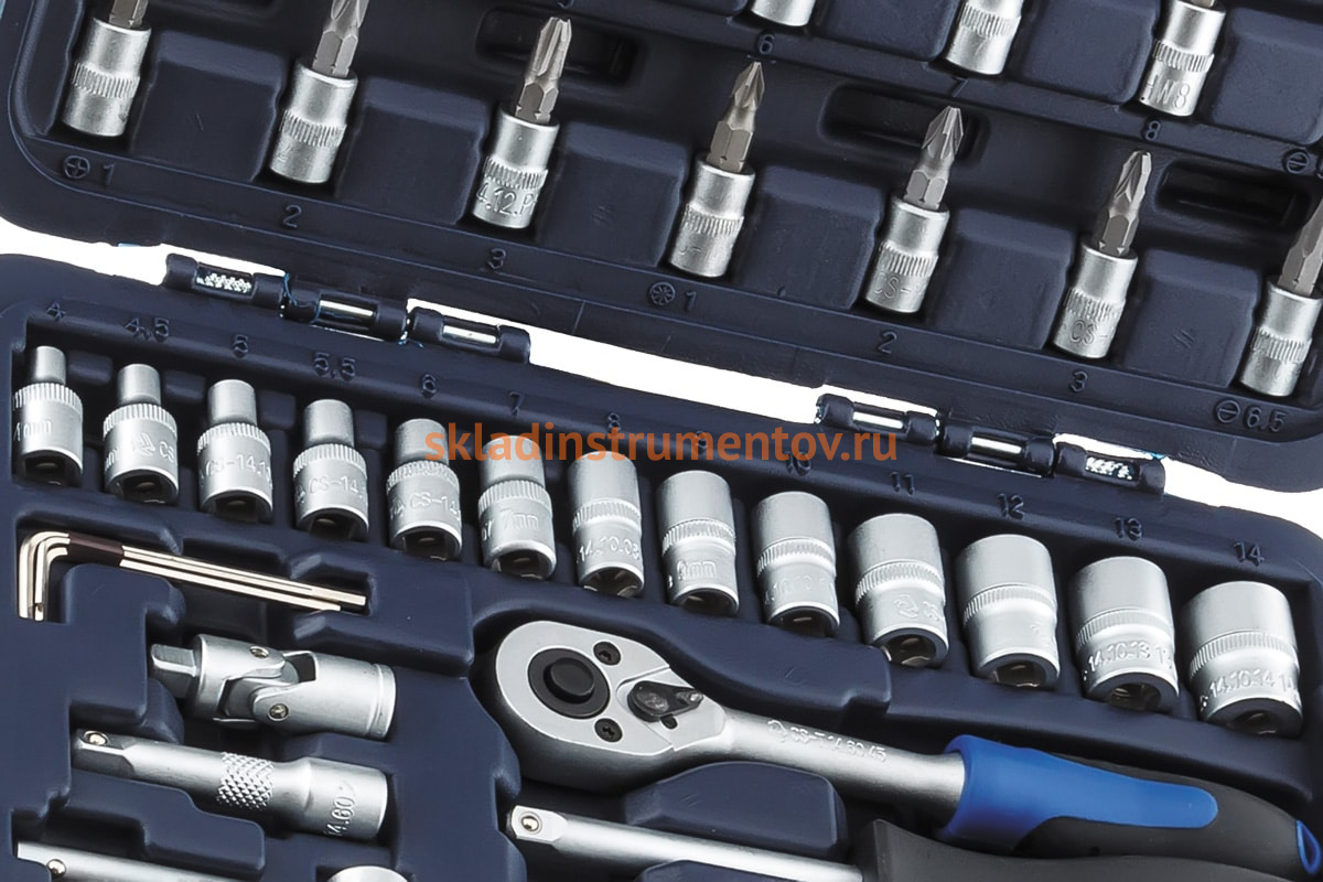Набор инструментов Станкоимпорт на 1/4" 46 предметов CS-2046PMQ - удобный и практичный вариант для работ с крепежом. Производителем представлено пять видов бит, вороток, торцевые головки от 4 до 14 мм, три шестигранных торцевых ключа, шарнирный кардан, трещоточный ключ с быстрым сбросом. Весь инструмент обладает посадочным квадратом 1/4". Небольшой кейс для хранения набора отличается удобным расположением элементов: биты занимают верхнюю крышку, что выделяет их среди прочего инструмента и в то же время не нагружает кейс.