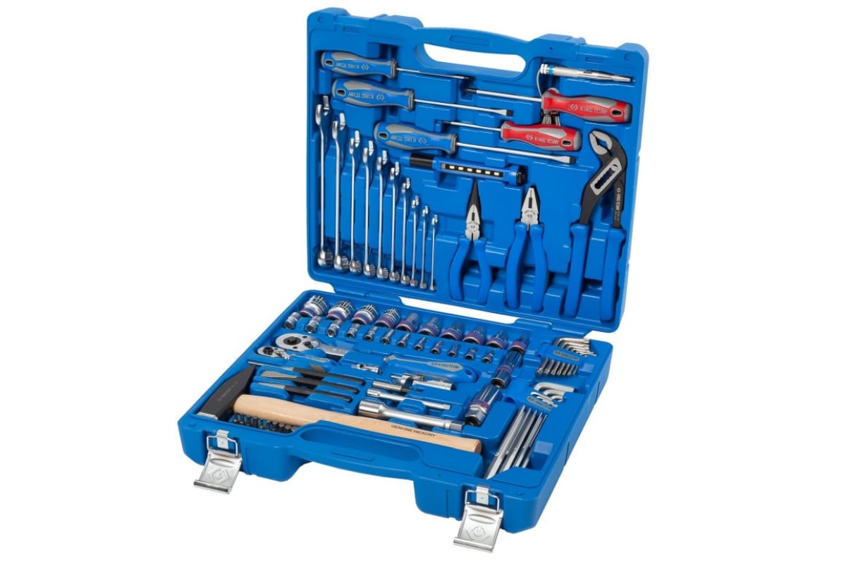 Универсальный набор инструментов KING TONY 81 предмет 7581MR изготовлен из высококачественной, устойчивой к деформации и износу хромованадиевой стали, благодаря чему гарантирован длительный период эксплуатации. Двухкомпонентные рукоятки обеспечивают надежный хват и максимальную передачу крутящего момента, кроме того они устойчивы к воздействию агрессивных жидкостей. Торцевые головки изготовлены с применением метода ковки, что придает им дополнительную прочность. Светодиодный фонарик с шестью элементами имеет крепление клипса+магнит, что повышает комфорт работы в условиях недостаточного освещения. Для повышения функциональности набора в комплекте поставляется тестер для проверки напряжения.