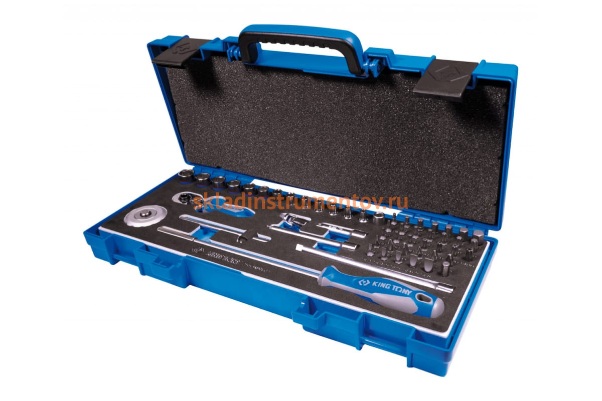 Набор шестигранных торцевых головок с принадлежностями KING TONY 1/4" 4-14 мм, 55 предметов 2553MRV01 имеет несколько видов головок в комплекте, что делает набор универсальным.