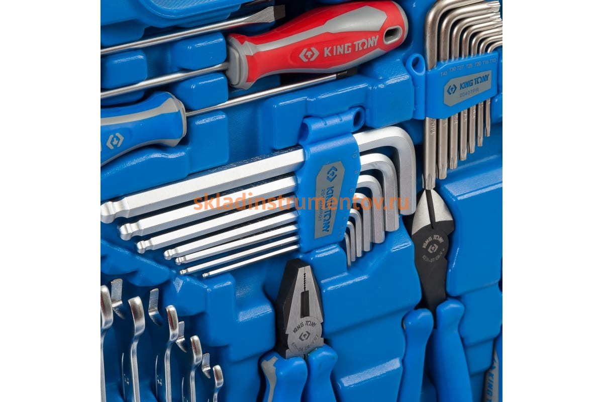 Набор инструментов универсальный, дюймовый, 87 предметов KING TONY 7587SR01 представлен в оптимальной комплектации и подходит для любого вида работ. Изготовлен из высокопрочной легированной хром-ванадиевой стали.