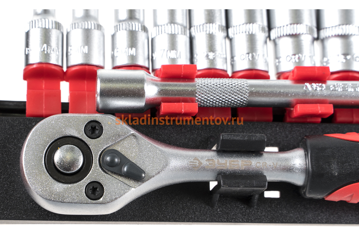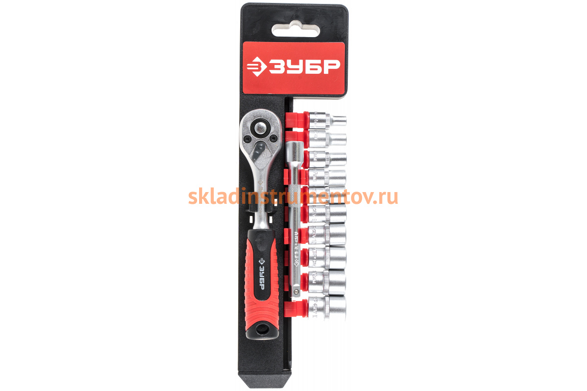 Набор торцевых головок Зубр МАСТЕР 1/4" на пластиковом рельсе, трещотка, удлинитель, Cr-V, 4-13мм, 12 предметов 27645-H12 относится к профессиональному классу. Подходит для эксплуатации в автосервисах, мастерских, на станциях технического обслуживания.