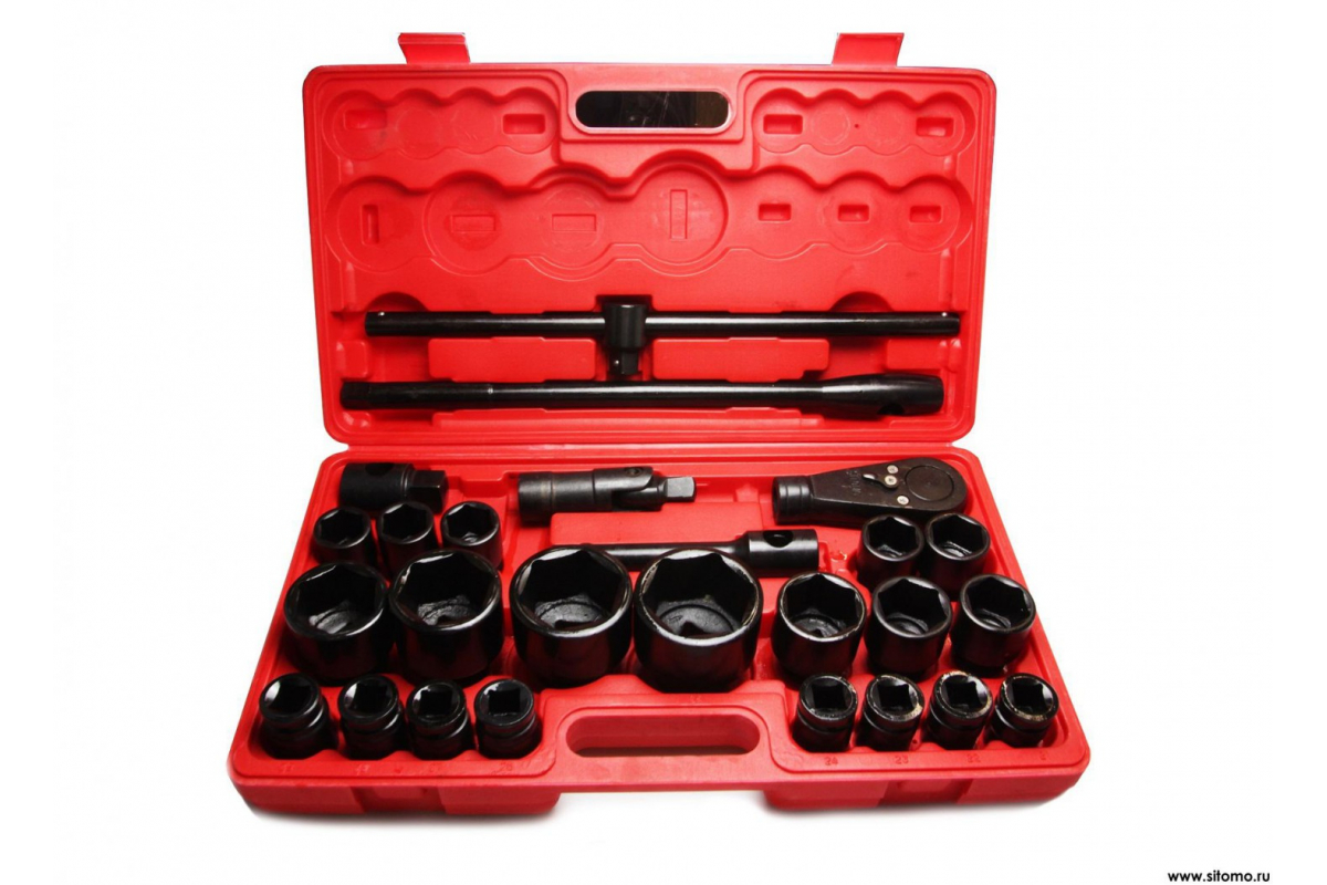 Набор торцевых головок SITOMO N7 21-65мм, 3/4"-1", 26 шт 331208 используется в автомастерских для обслуживания резьбовых соединений. Оксидированное покрытие надежно защищает инструмент от коррозии.
