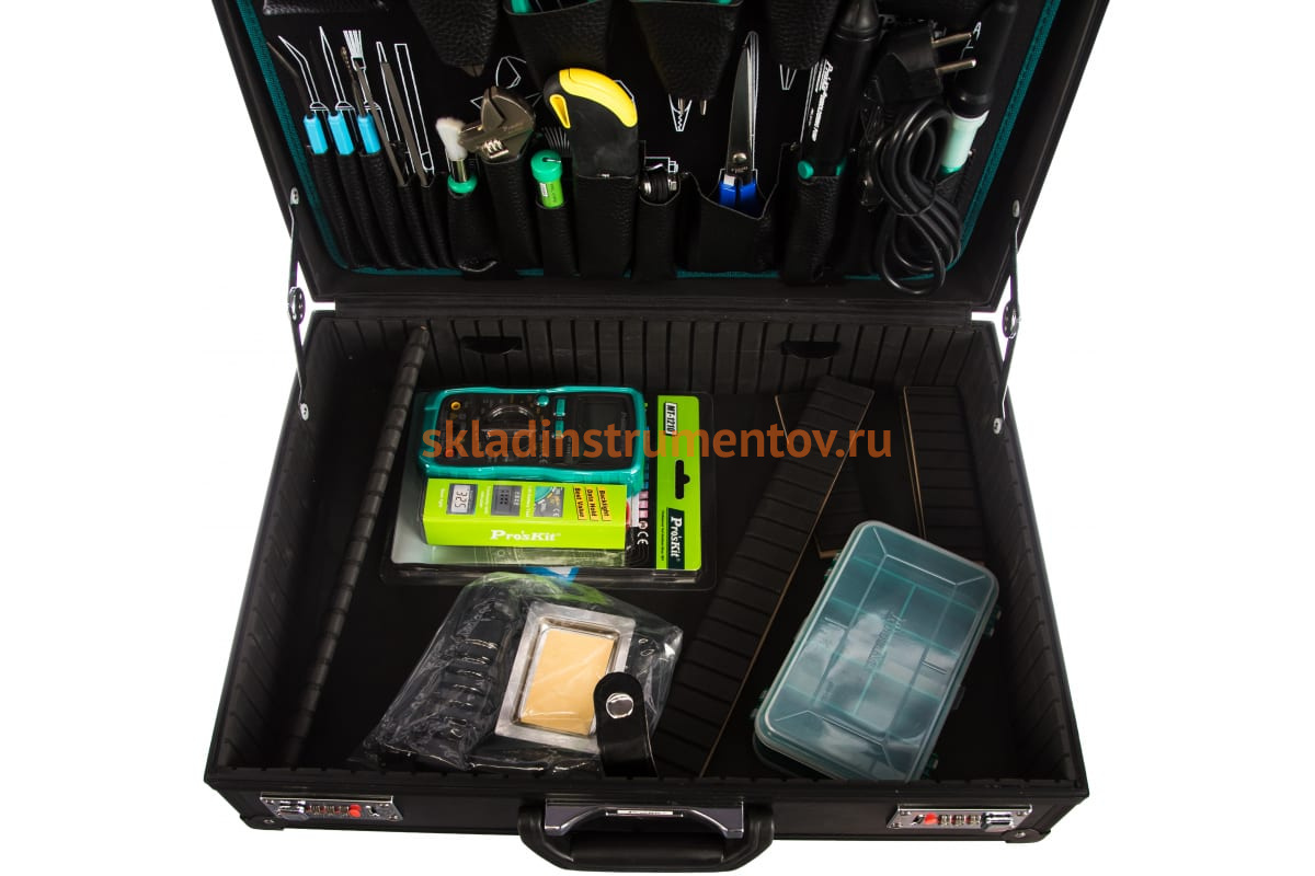 Набор инструментов ProsKit 1PK-1305NB 00270466 подходит для проведения слесарных, паяльных и распаячных, а также электротехнических работ.
