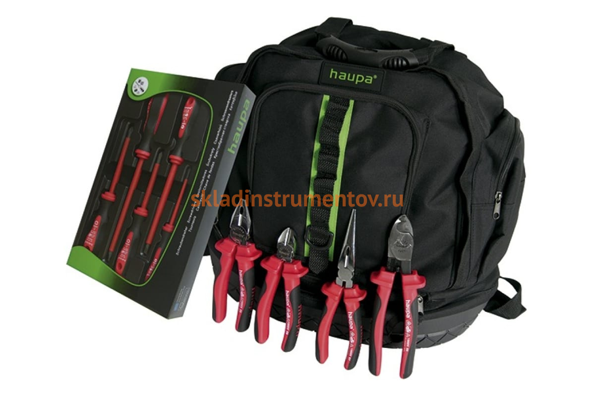 Рюкзак с инструментами VDE HAUPA 220279 включает в себя все необходимые компоненты для выполнения ремонтных операций в сфере электромонтажных работ. Инструменты удобно располагаются в рюкзаке, который облегчает их хранение. Комплект подходит для профессионального использования, его легко брать с собой для выезда на объект.