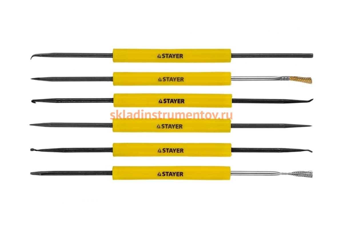 Набор радиомонтажника STAYER MAXTerm 12в1 55338-H12 состоит из различных предметов, например: ножа, извлекателя диодов, кисточек, скребка, держателей.