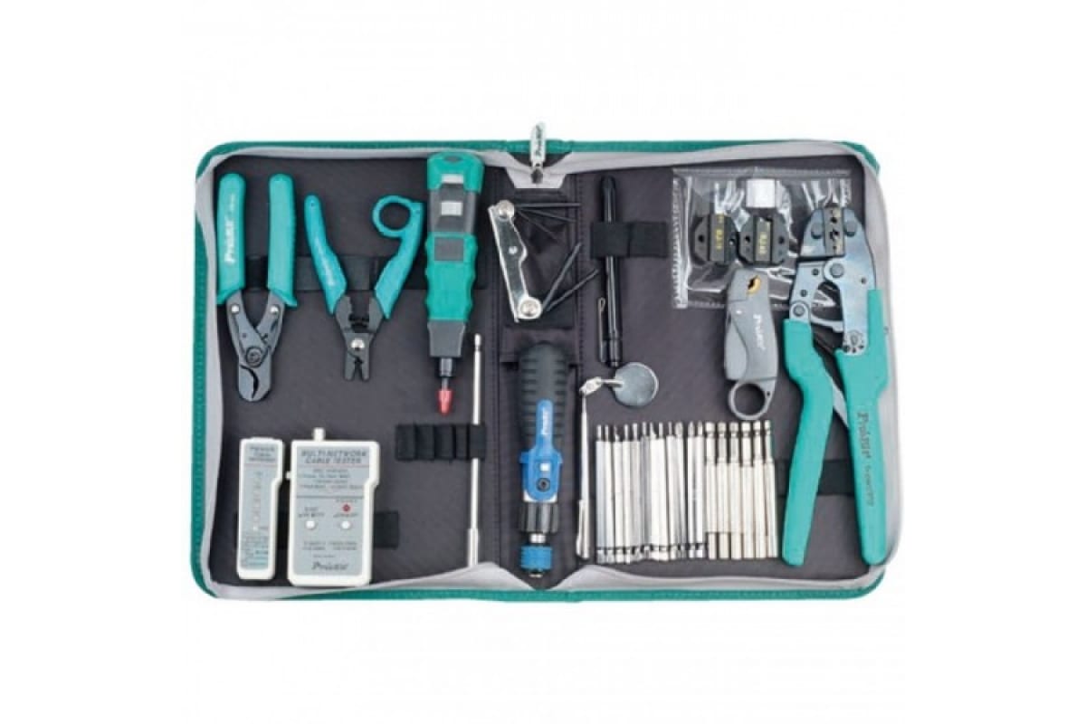 Набор инструмента для ПК ProsKit 1PK-936B 00093509 включает множество предметов для ремонта компьютерных сетей.