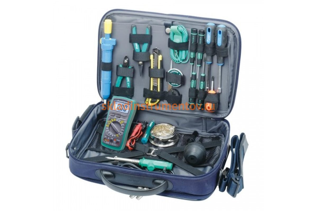 Набор инструментов ProsKit PK-2073B 00321290 поставляется в удобной, закрывающейся на молнию, сумке с ручкой и плечевым ремнем.