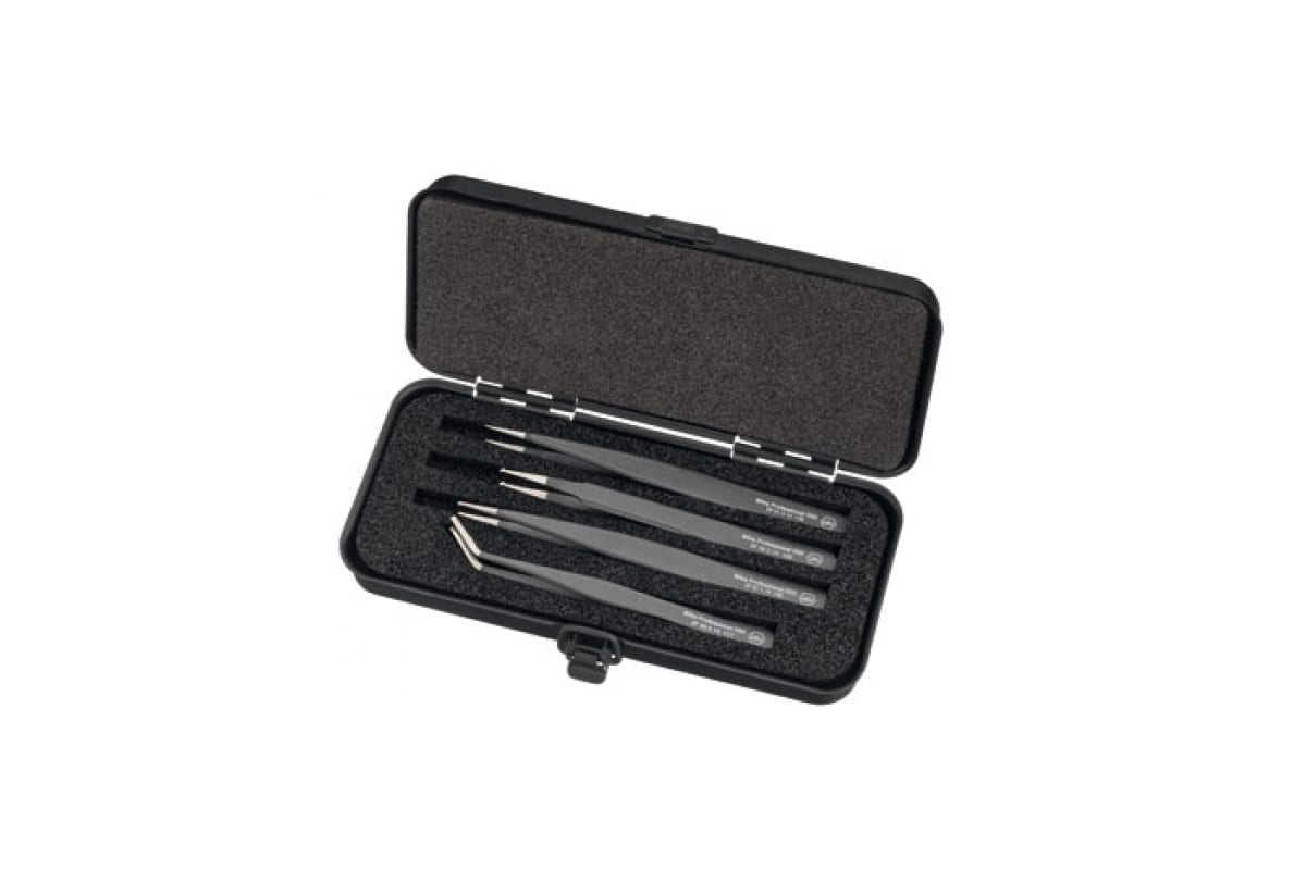 Набор пинцетов SMD Professional ESD, 4 предмета Wiha 32349 предназначен для удержания и захвата электронных деталей. Комплектуется четырьмя пинцетами, которые подходят для различного рода прецизионных работ. Инструменты изготовлены их хромоникелевой нержавеющей специальной легированной стали. Антистатическое покрытие ESD не дает бликов поверхности и защищает от электростатических зарядов. Комплект поставляется в металлической коробке, которая экономит место и облегчает транспортировку. Отличается кислотостойкостью.