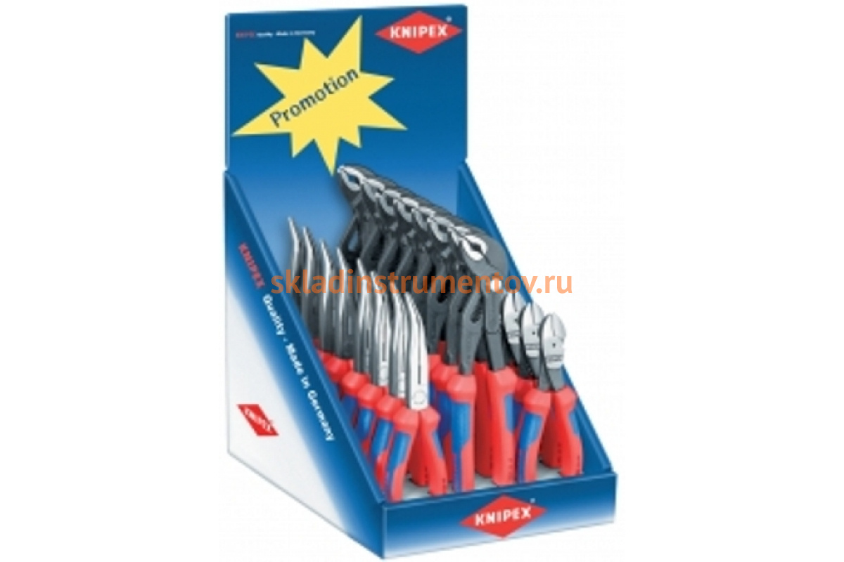 Набор инструмента KNIPEX KN-001923 - это демонстрационный стенд, выполненный из прочного прессованного картона, в котором расположены сантехнические клещи "Cobra", боковые кусачки особой мощности и круглогубцы. Инструмент выполнен из высокопрочного материала и рассчитан на высокие нагрузки. Эргономичные рукоятки обеспечивают уверенный захват без проскальзывания. Набор имеет малые габариты, поэтому не занимает много места в торговом зале.