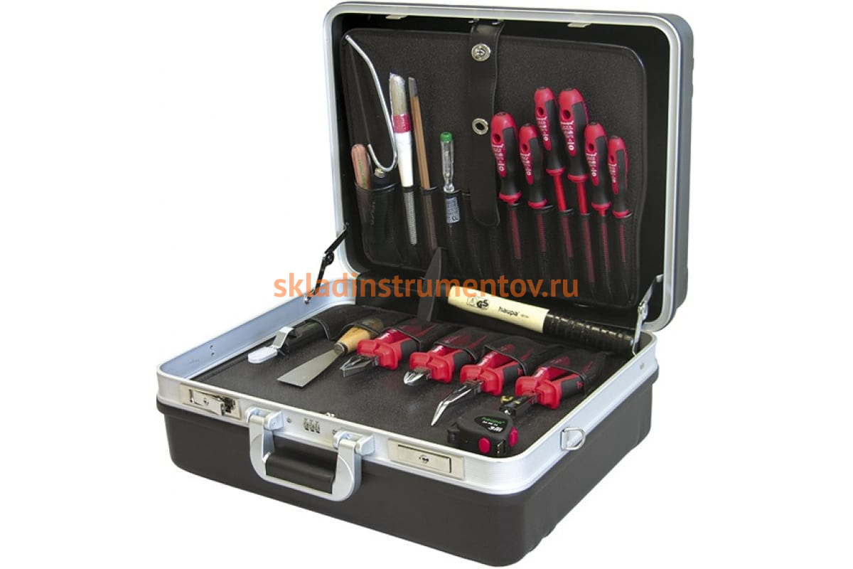 Набор инструментов Start up VDE HAUPA 220235 может использоваться при проведении строительно-ремонтных работ, прокладке кабеля или при монтаже и демонтаже резьбовых соединений. Набор состоит из 19 предметов и поставляется в чемодане с жесткой оболочкой. Чемодан обладает двумя панелями на липучках для инструментов, цифровым замком, отделением для документов и съемным плечевым поясом. Рабочие части инструментов изготовлены из высокопрочных материалов. Двухкомпонентные рукоятки обеспечивают комфортную работу, так как не скользят в руке.