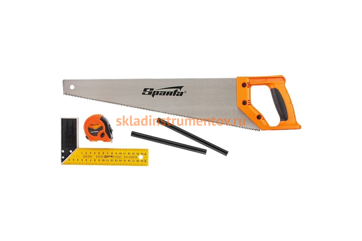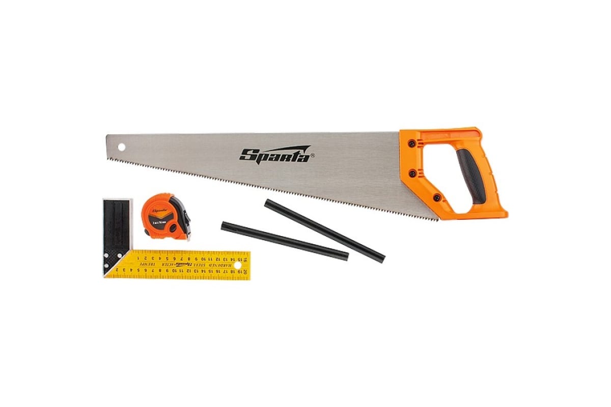 Столярный набор SPARTA 23902 состоит качественных инструментов, которые необходимы для проведения ремонтных и отделочных работ. В набор входит ножовка, которая служит для распиловки древесины, фанеры, ДСП, МДФ, пластика и ламинированных плит. Удобная рулетка. Два карандаша специальной формы, благодаря которой они не скатываются с поверхности. Угольник, с помощью которого можно проверить точность прямых углов и нанести разметку на поверхность.