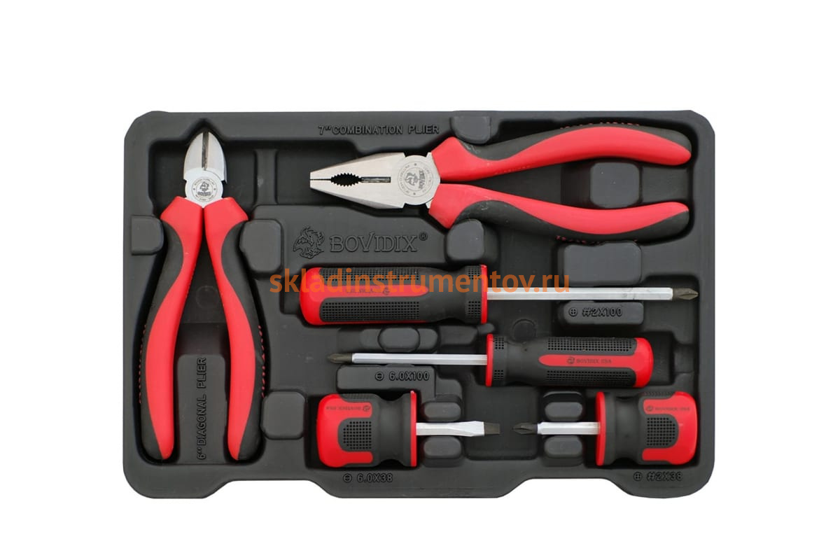 Набор отверток и пассатижей, 6шт, без кейса BOVIDIX 288400604/0 - комплект высококачественных инструментов для выполнения ремонтно-монтажных и демонтажных операций в области обслуживания автомобилей, промышленного оборудования и прочей техники. Все компоненты просты и удобны в эксплуатации, обладают высоким рабочим ресурсом.