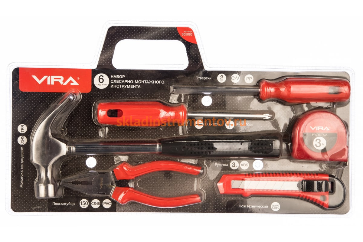 Набор слесарно-монтажного инструмента VIRA 6 предметов 305083 пригодится для проведения бытовых ремонтных работ. В комплекте 6 инструментов, рабочие части которых выполнены из стали марки CS45, CS60 и хромованадиевой стали. Рукоятки отверток и плоскогубцев изготовлены из ПВХ. Набор поставляется на блистере с рукояткой для транспортировки.