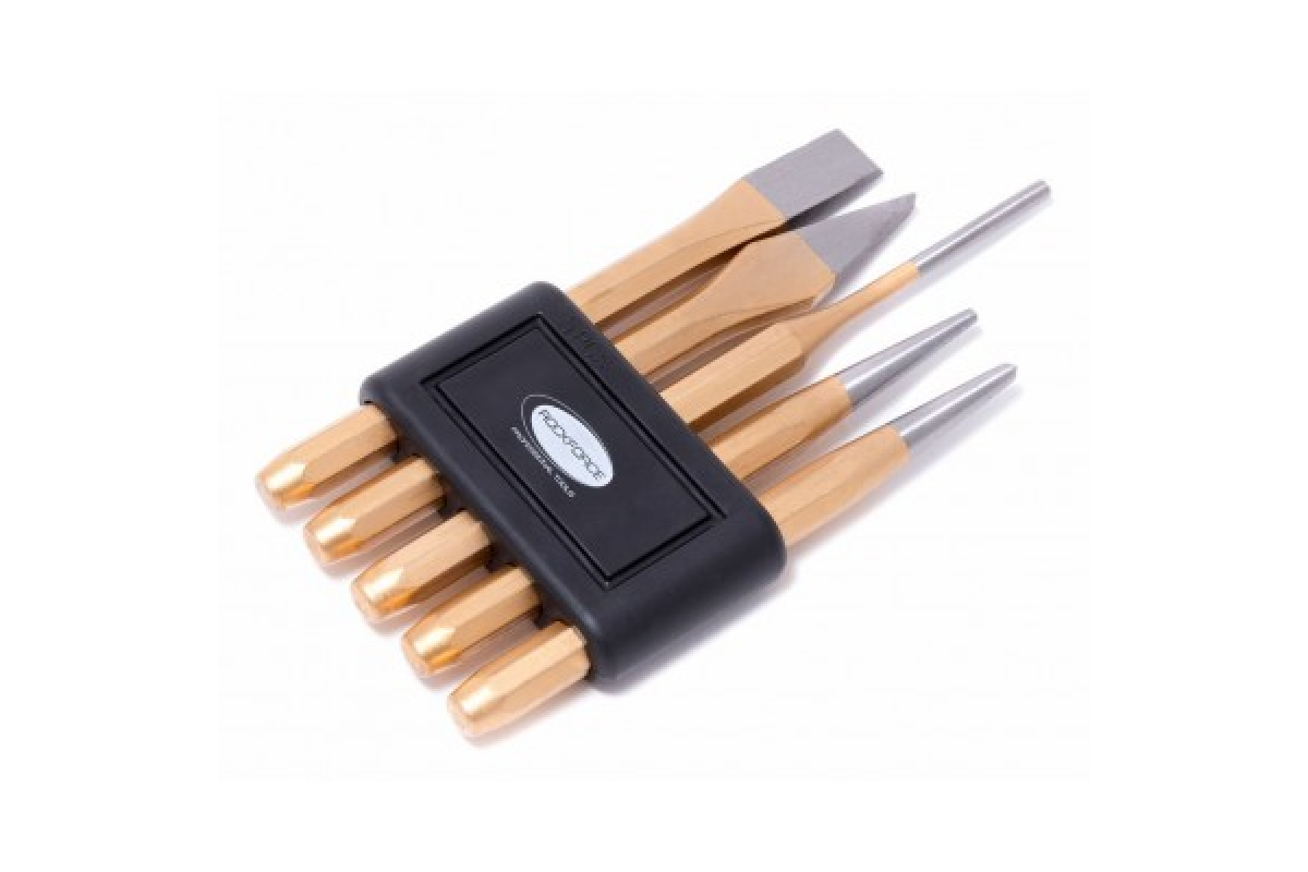 Набор зубил и выколоток ROCKFORCE RF-5054 подойдет для работы с листовым металлом. Качественный инструмент с надежной заточкой существенно упрощает слесарные работы на производстве и в мастерских.