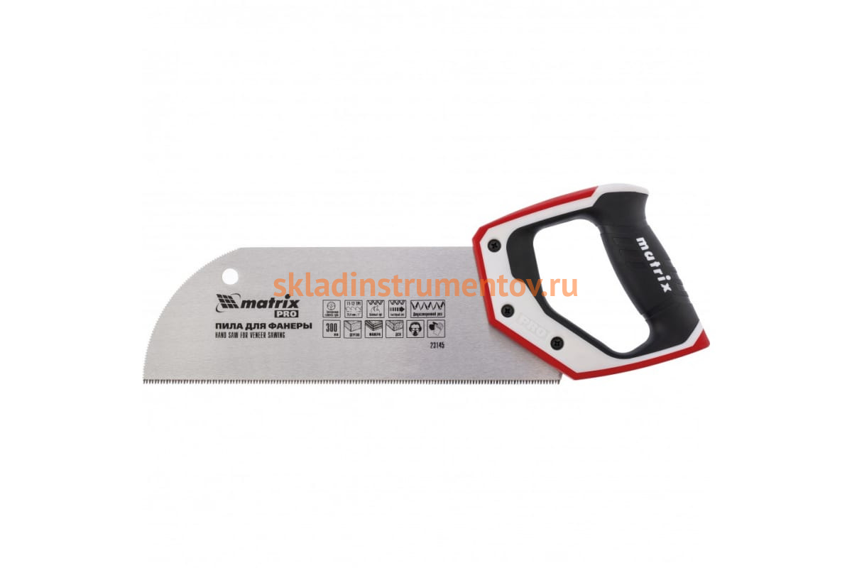 Пила для фанеры с запилом MATRIX 300 мм 23145 подходит для резки фанеры, твердой и мягкой древесины, ДСП. Имеет трехгранную заточку зубьев.