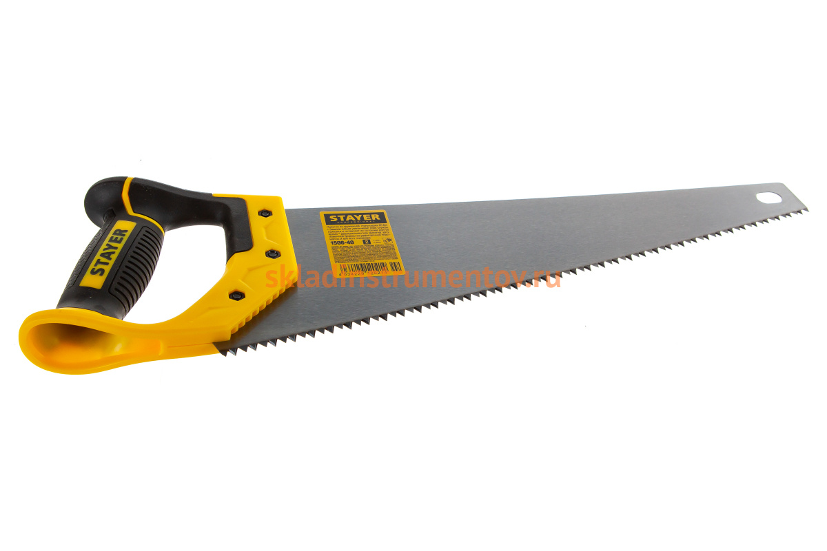 Ножовка по дереву пила Stayer "Cobra 5" 400 мм, 5 TPI, прямой крупный зуб, быстрый рез поперек волокон, для крупных и средних заготовок, 1506-40_z02 представляет собой классический инструмент. который найдет применение: