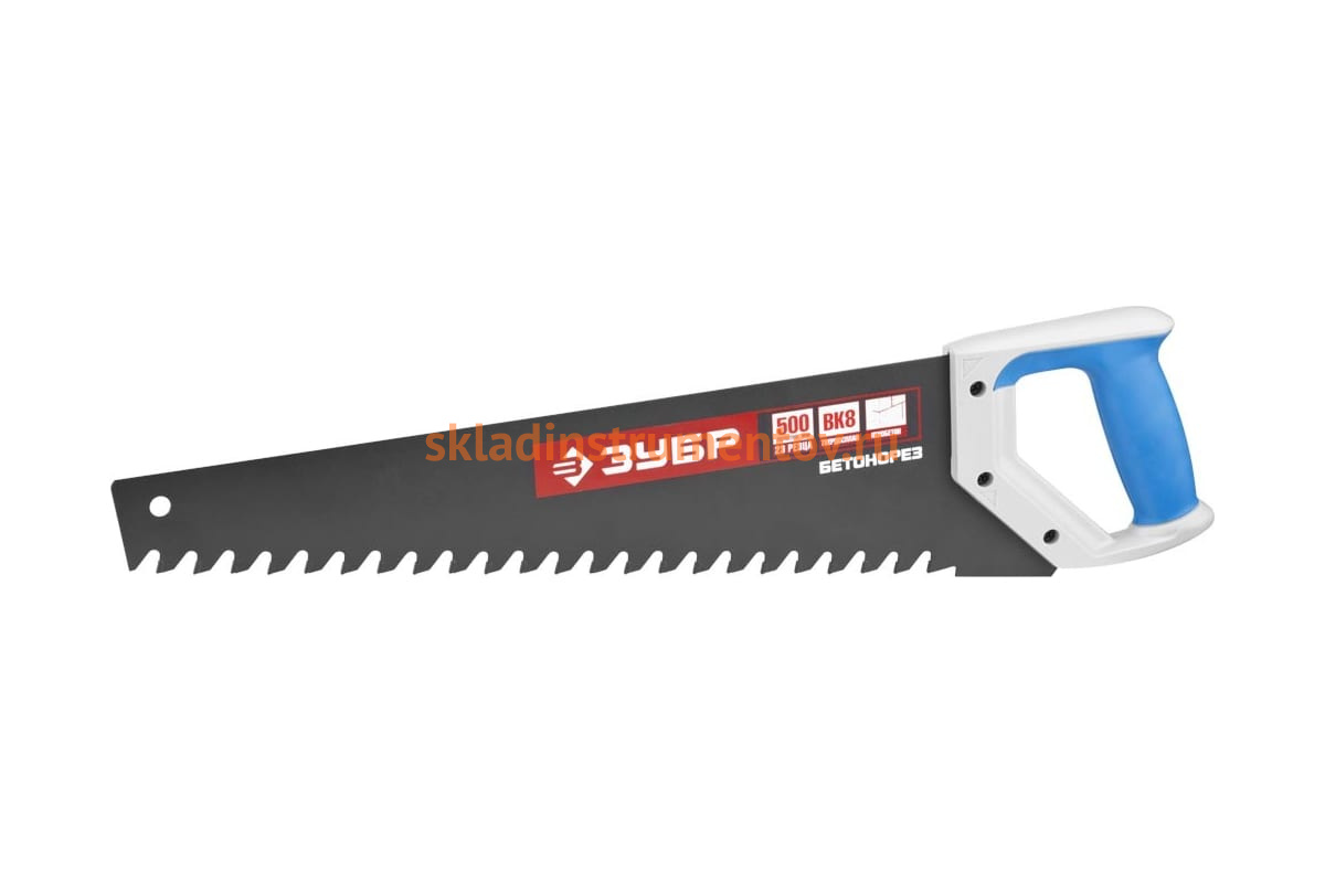Пила по пенобетону Бетонорез Зубр ЭКСПЕРТ 15157-50 служит для проведения распилочных работ по пенобетону и ячеистым блокам. Полотно с тефлоновым покрытием не подвержено возникновению коррозии. Рукоятка выполнена из ударопрочной пластмассы и мягкого полимера, что обеспечивает комфортную работу и снижает утомляемость. Твердосплавные напайки на зубьях служат для увеличения скорости распила. Шаг зуба - 20 мм, длина полотна - 500 мм.