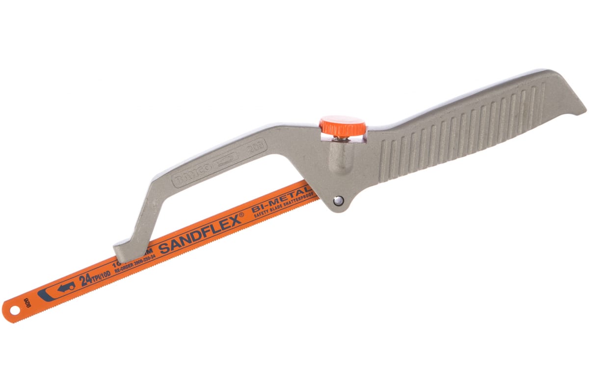 Ножовка по металлу BAHCO 208 позволяет резать металл в труднодоступных местах. Высокопрочное полотно Sandflex с шагом 24 зуба на дюйм и фиксирующий винт полотна повышают режущие способности и точность резки. Вес данного изделия составляет 260 г.
